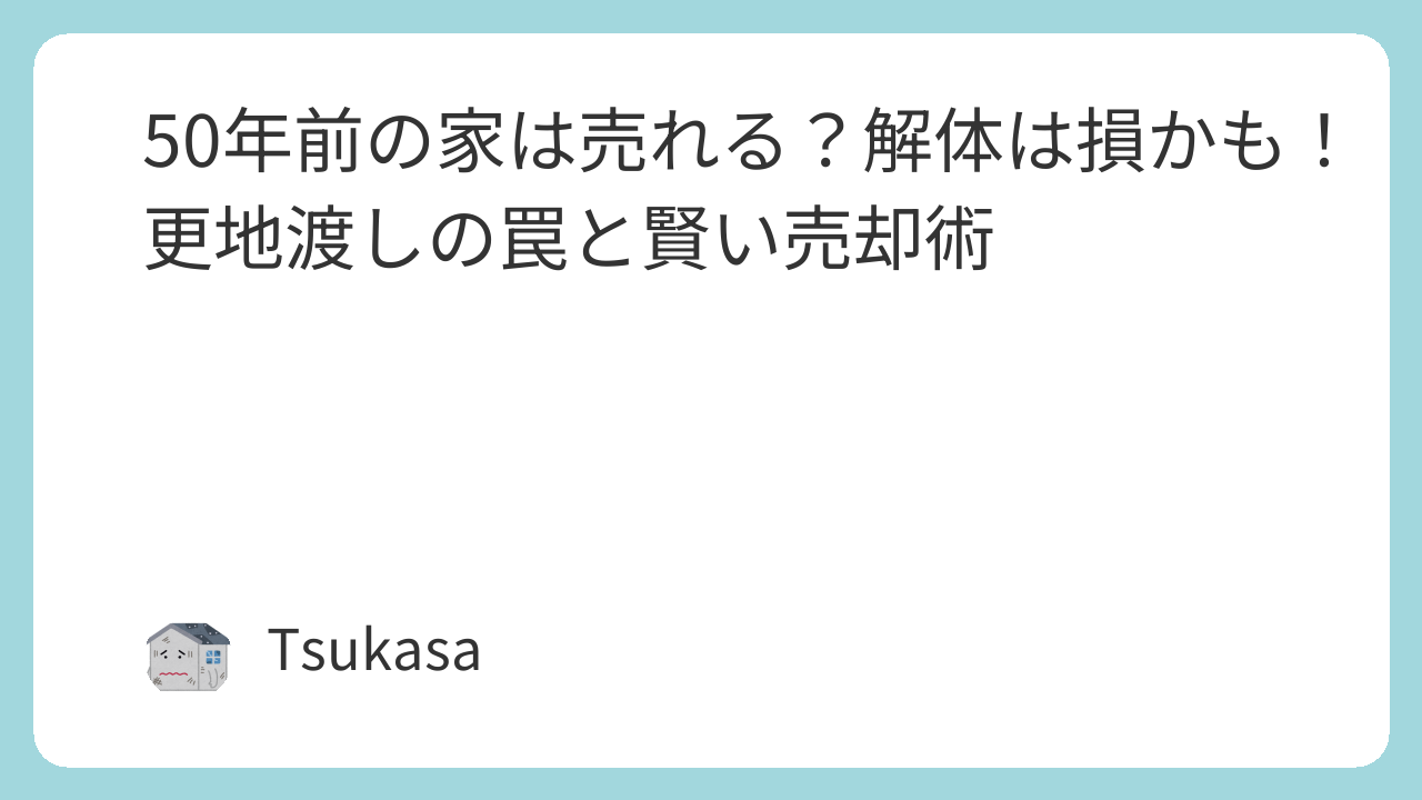 50年前の家は売れる?解体は損かも!更地渡しの罠と賢い売却術