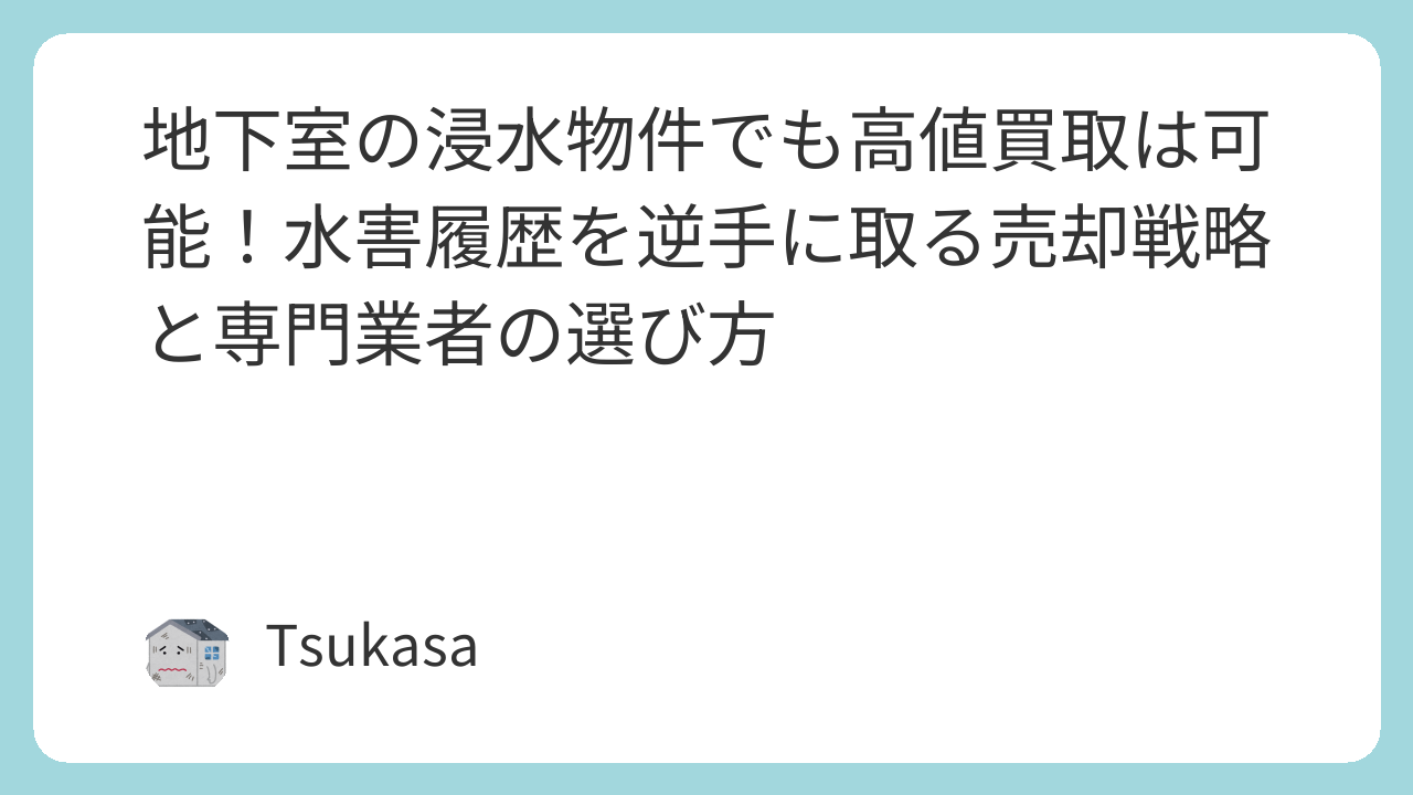 - 地下室浸水物件は一般市場では評価されにくいが専門買取なら道はある