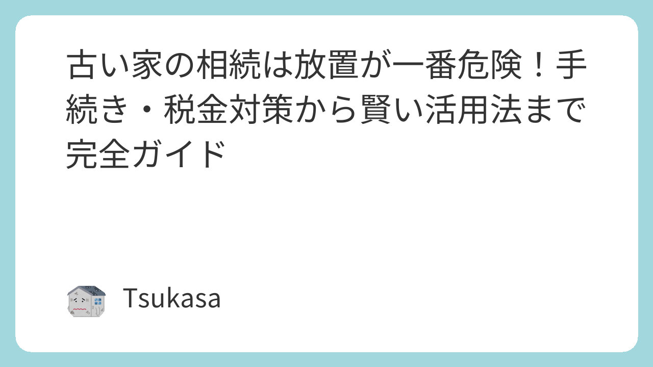- 古い家の相続は放置すると税金や管理費、倒壊リスクなど多くの問題を引き起こす