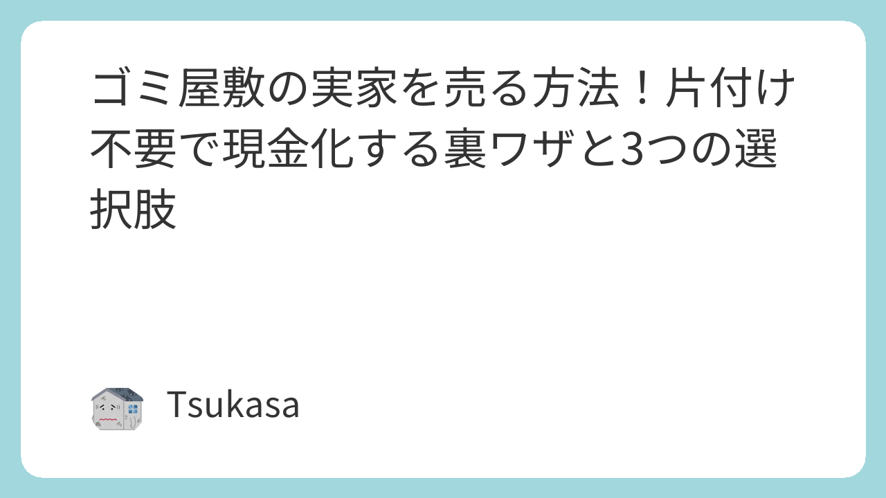 でも、安心してください。そんな絶望的な状況でも、実家を売る方法はちゃんと存在します。しかも、あなたが汗水流してゴミを片付ける必要がない方法だってあるんです。