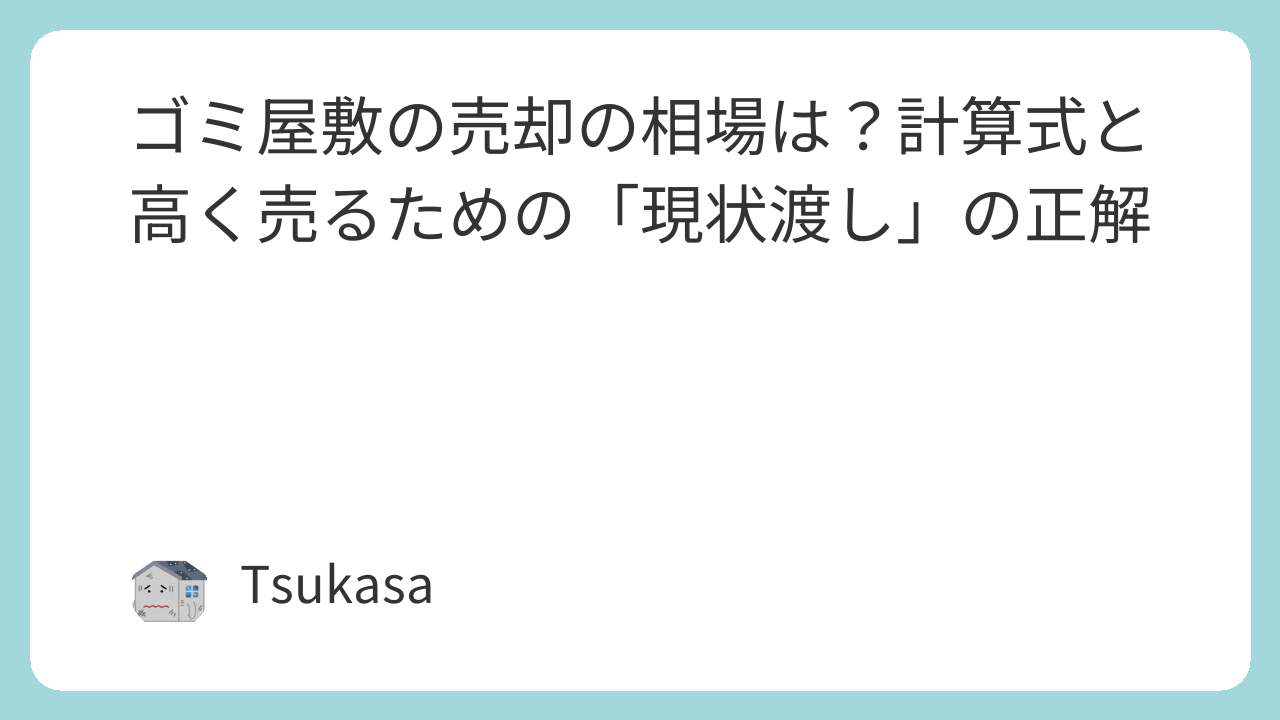 | POINT:土地値ベースの計算式 土地の市場価格 − 建物解体費用(約150〜300万円) − ゴミ撤去費用 = 売却相場 |