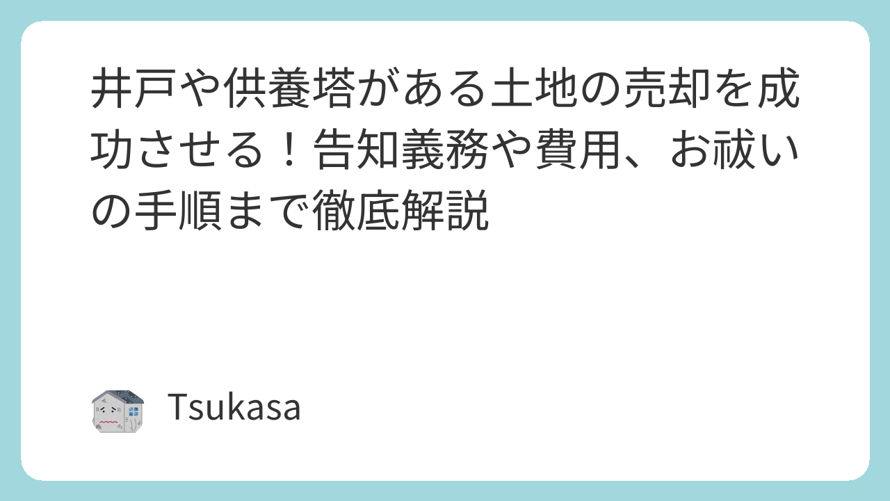 この記事では、私が実際に見てきた事例や現場の感覚を交えながら、井戸や供養塔がある土地をスムーズに、そして後腐れなく売却するための全知識をお伝えします。