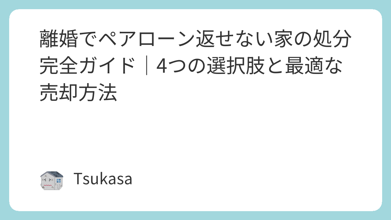離婚でペアローン返せない家の処分完全ガイド|4つの選択肢と最適な売却方法
