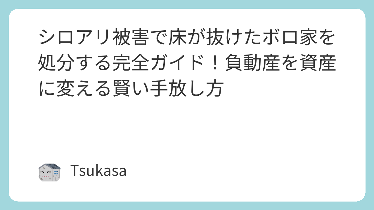 「シロアリ被害で床が抜けたボロ家を処分」という言葉を聞くと、多くの人は「そんなの無理だ」と反射的に思ってしまうかもしれません。