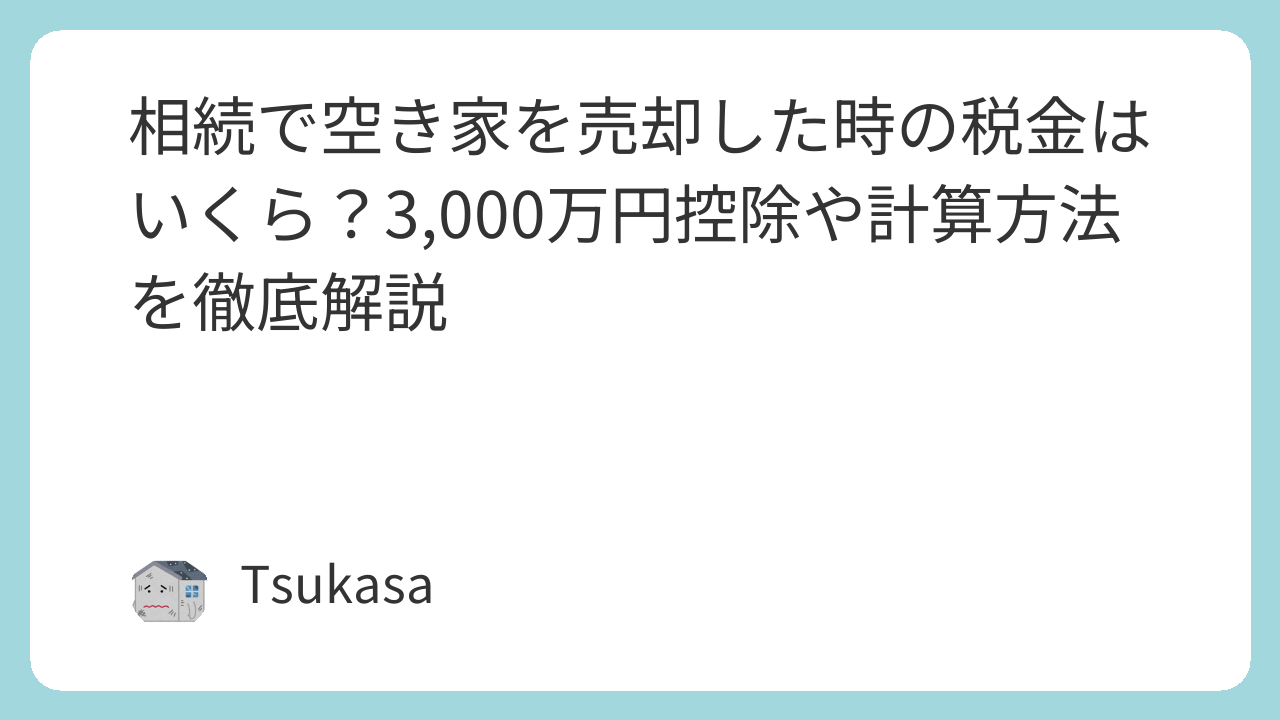 - 最大の節税策は「空き家の3,000万円特別控除」
